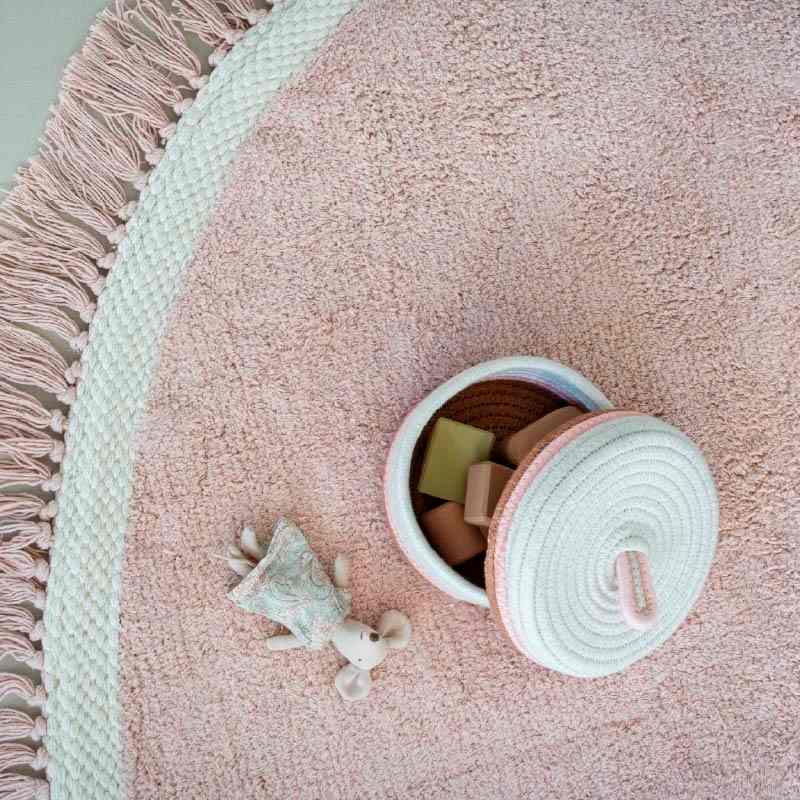 לשאוב לפני כביסה במכונה ולקפל את השטיח כלפי פנים